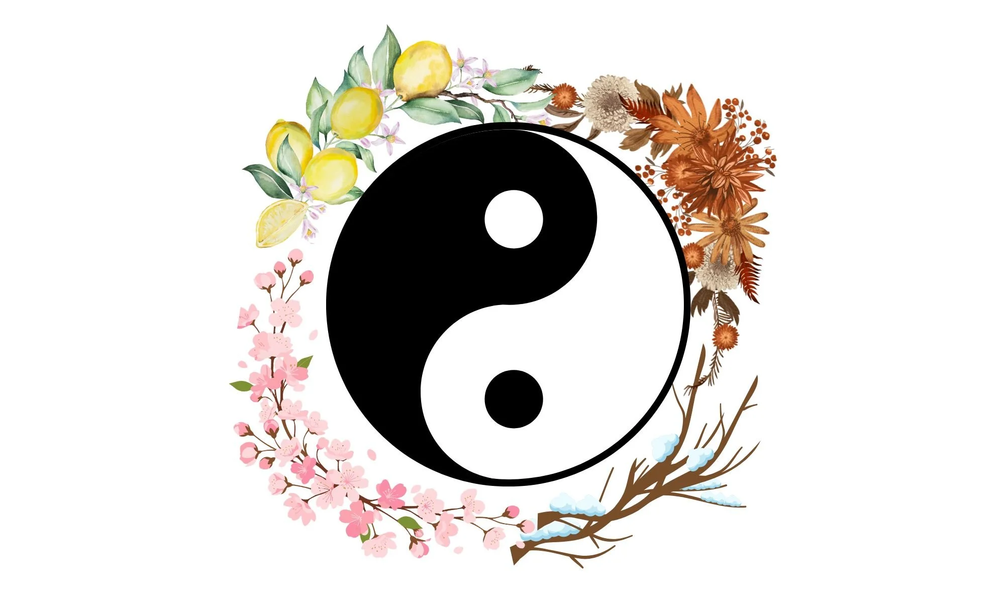 The yin yang symbol represents balance: everything exists in relation or contrast to something else and is part of the whole. Seasonal balance artwork by Natalie Rossiter.